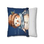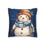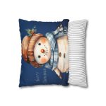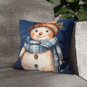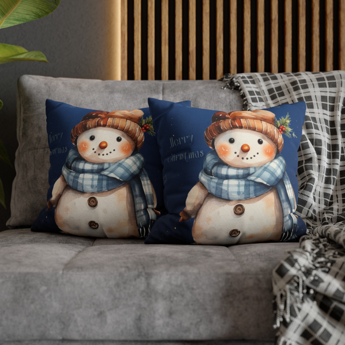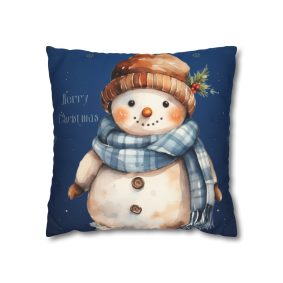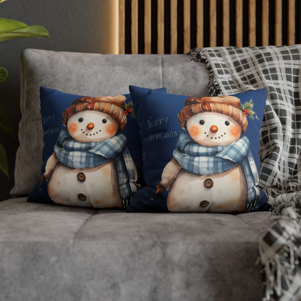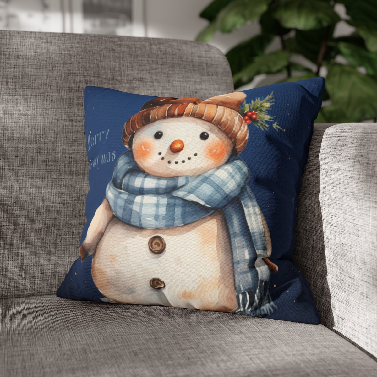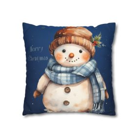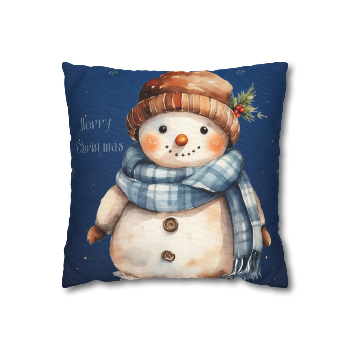 Merry Christmas Snowman on a Blue background is Happy to see you. This pillow case cover is designed with a warm feeling of home. Kids would love to see this as a gift left by Santa. With a hidden zipper closure it is easy to remove for cleaning. These beautiful indoor pillow cases in various sizes serve as statement pieces, making any room very special.