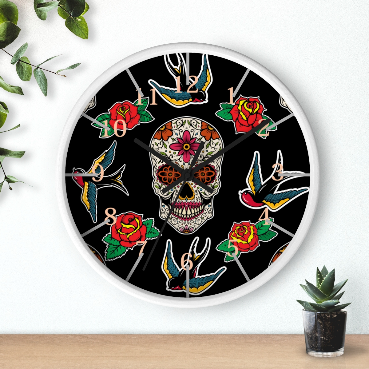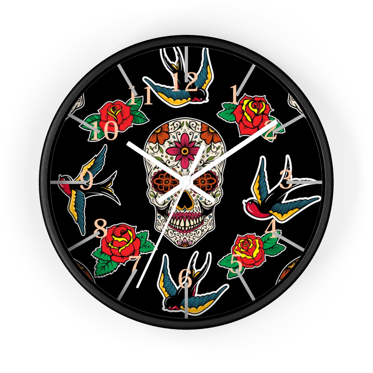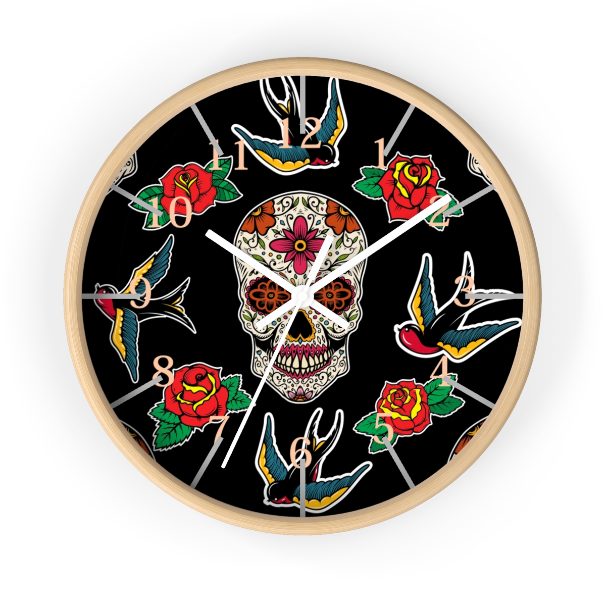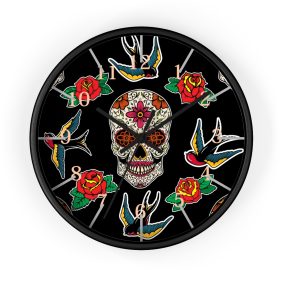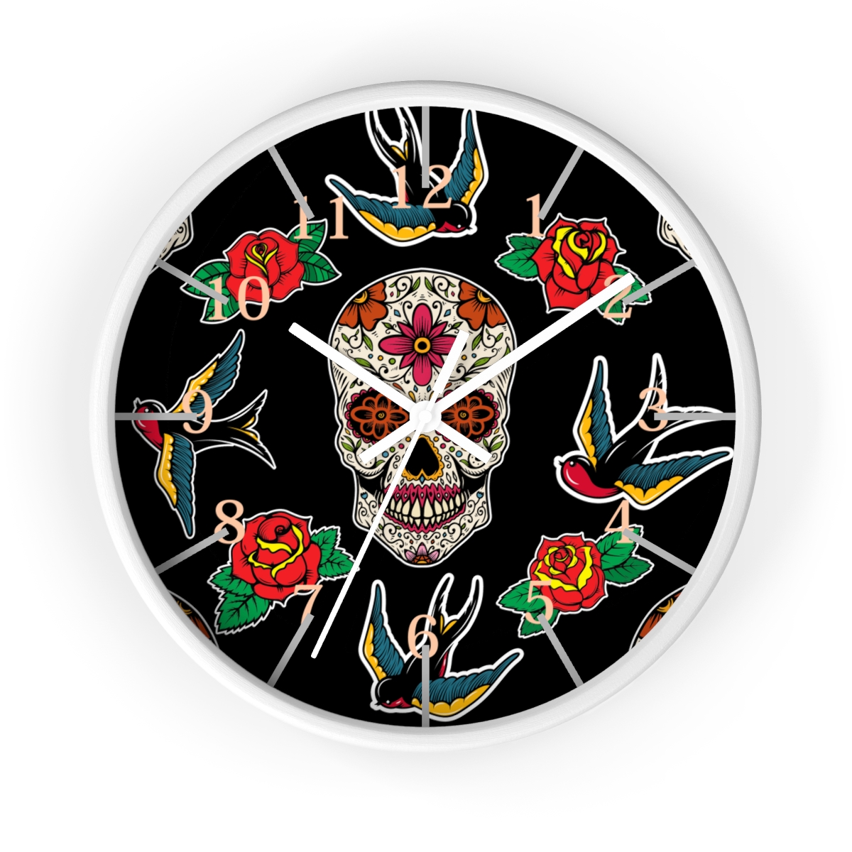 Sugar Skull Wall Clock – Decorative wall clock for the Sugar Skull lover. Three Outer rim colors to choose from.