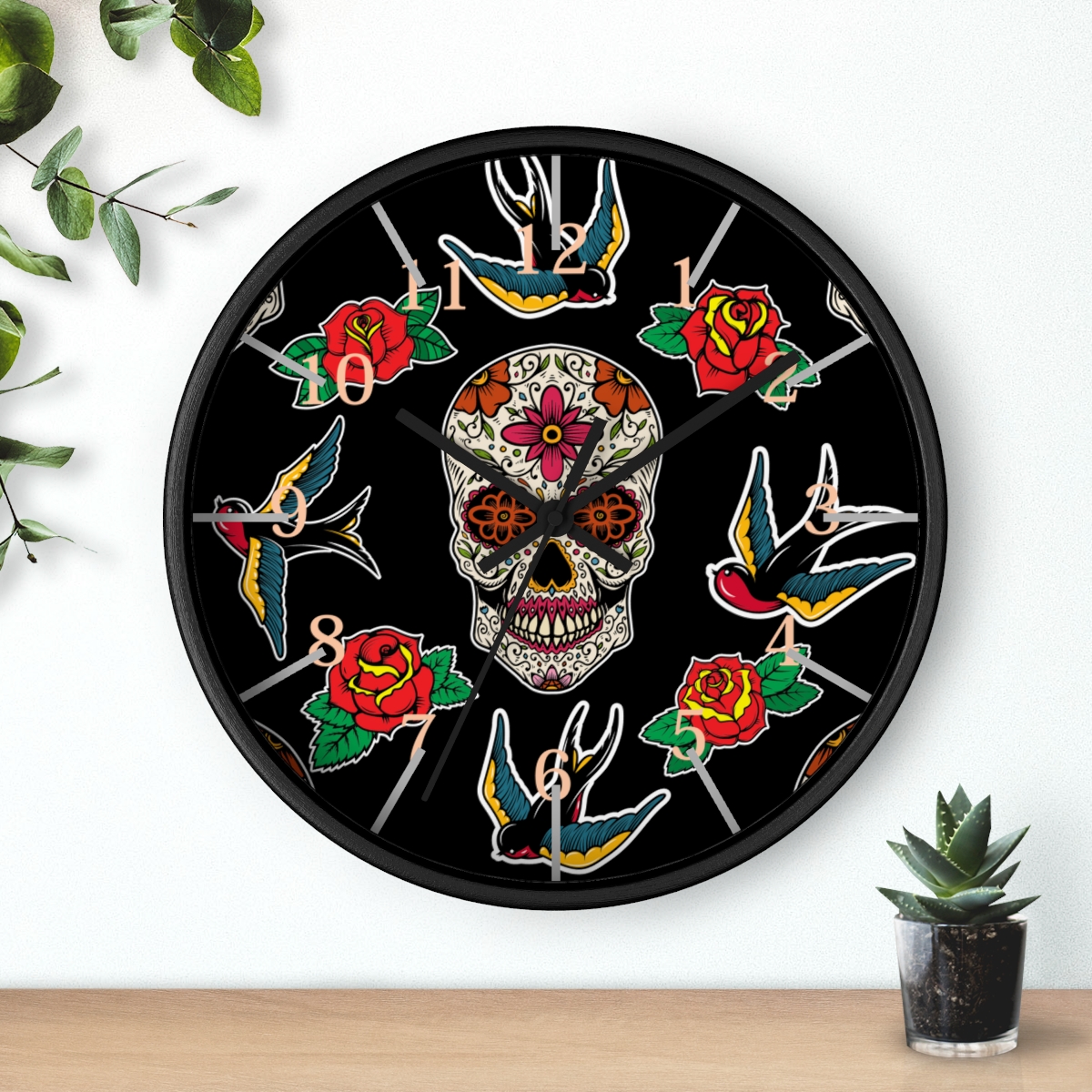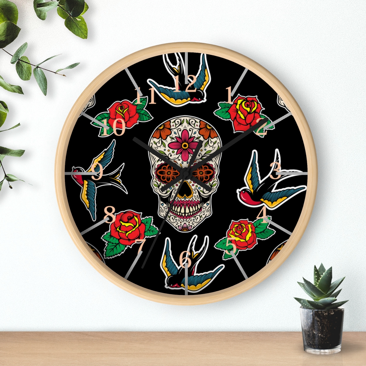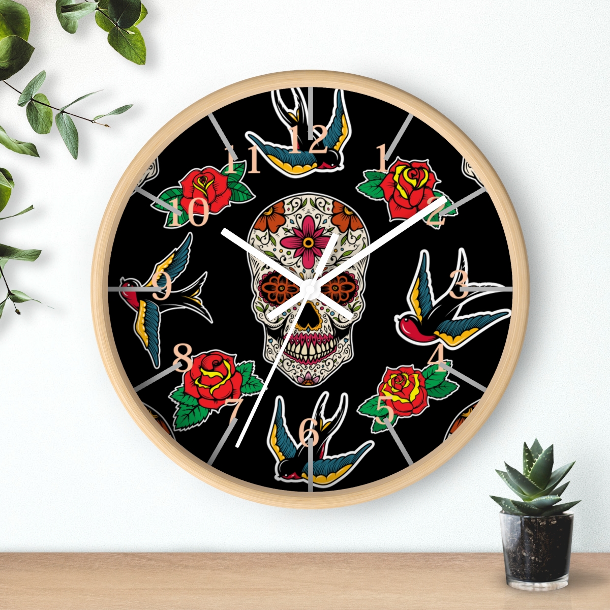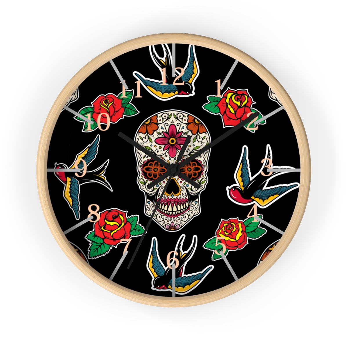 Sugar Skull Wall Clock – Decorative wall clock for the Sugar Skull lover. Three Outer rim colors to choose from.